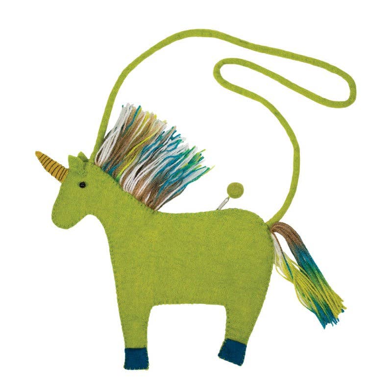Felted Unicorn Shape Cross- Body Bag with inside lining and long handle. 100% wool and Handmade