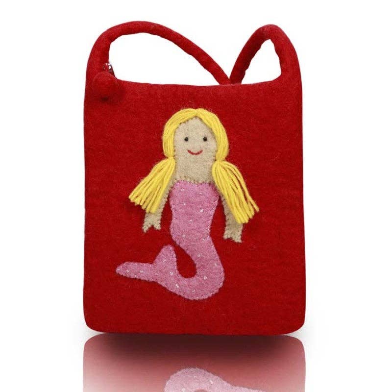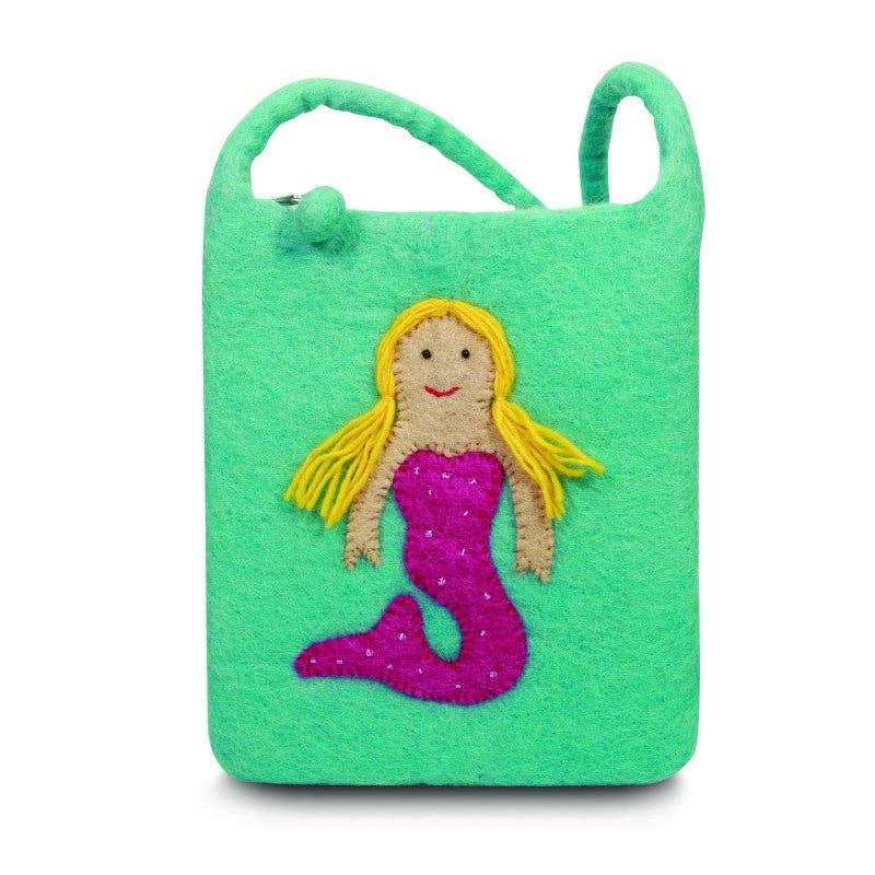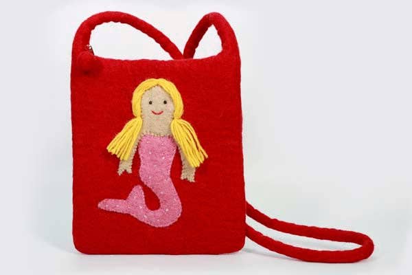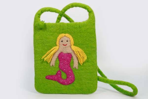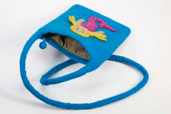 Mermaid Design Cross- Body Bag with inside lining and long handle. 100% wool and Handmade
