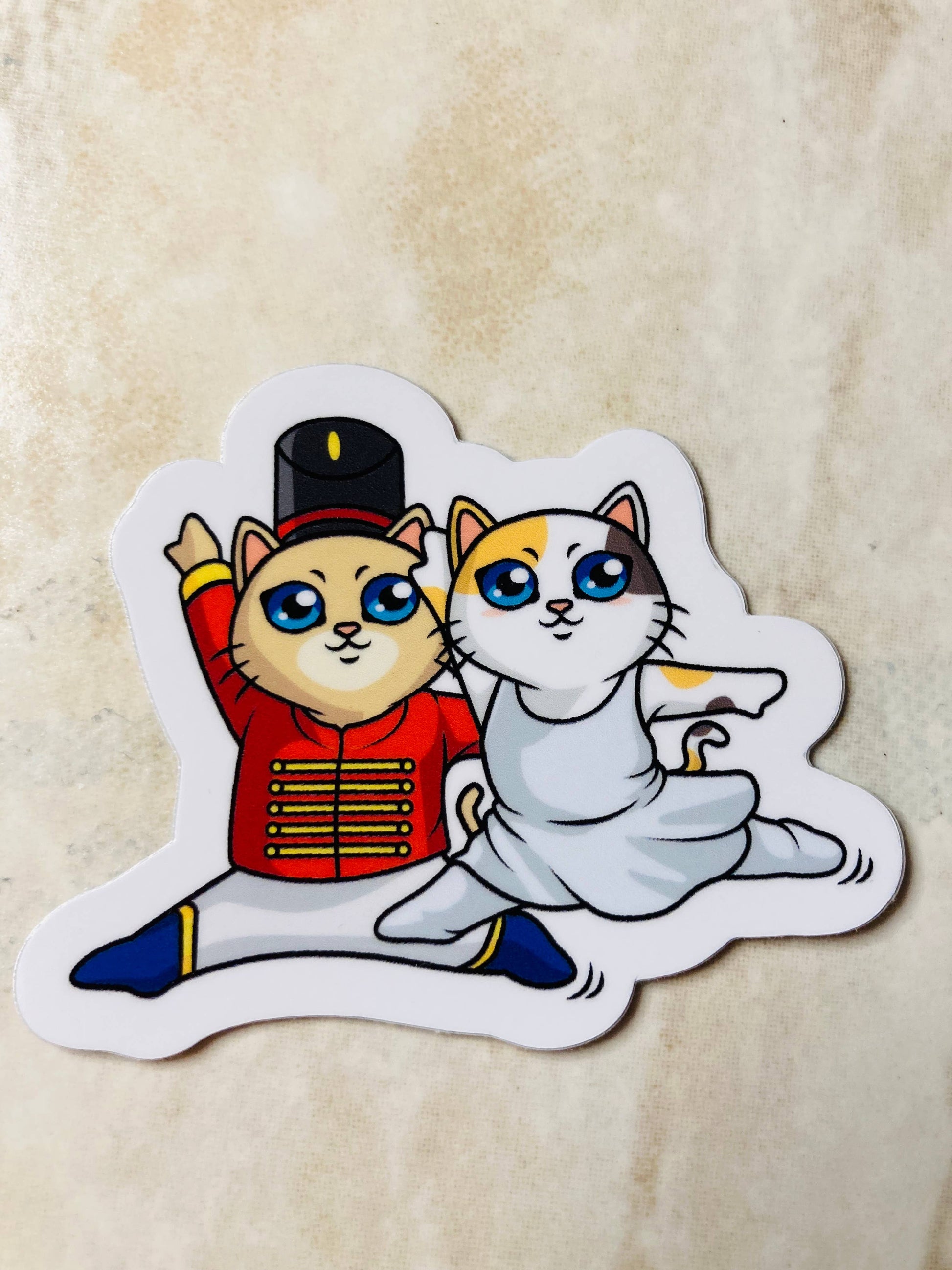 Paw De Deux Nutcat Nutcracker Sticker, Christmas Sticker