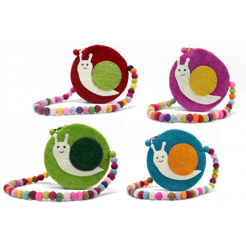 Snail Design Ball Handle Kids Sholder Bag with inside lining. 100% wool and Handmade