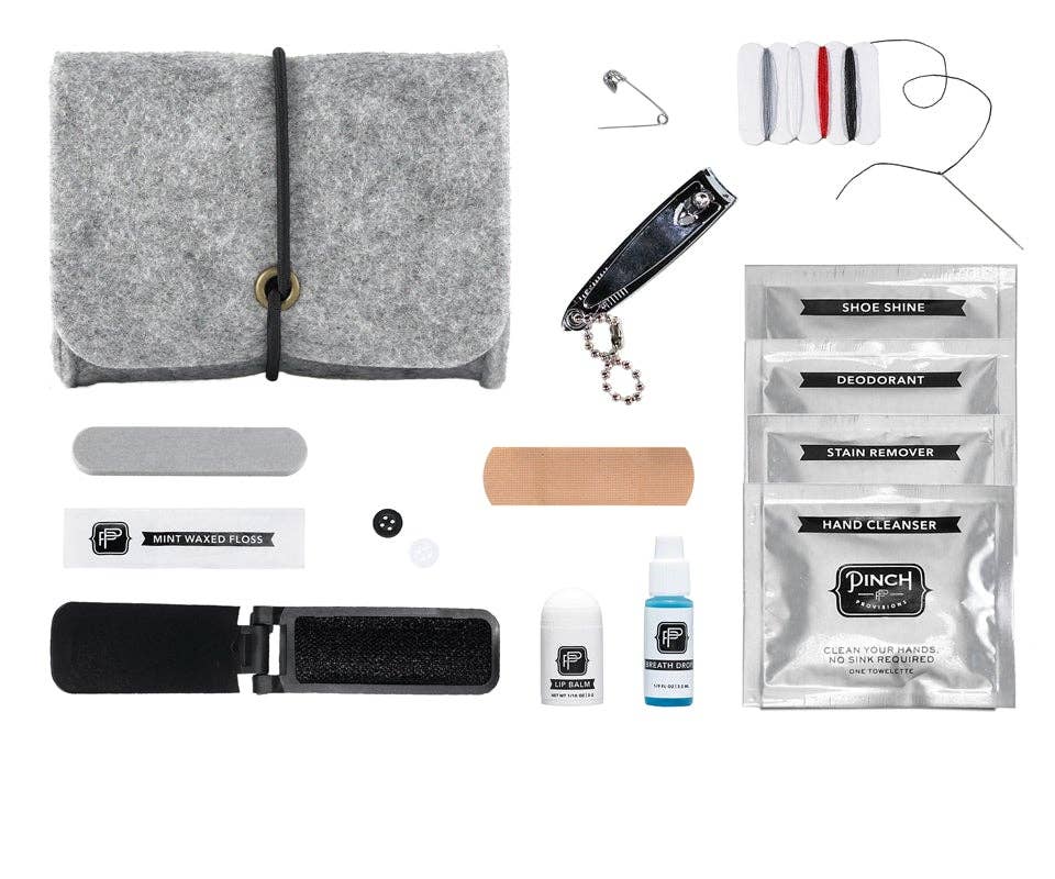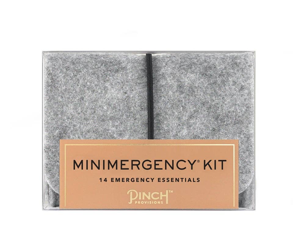 Meet our universal problem-solver, our first-ever unisex Minimergency Kit. Housed in the perfect little grey felt pouch with elastic closure, this kit contains 14 emergency essentials.